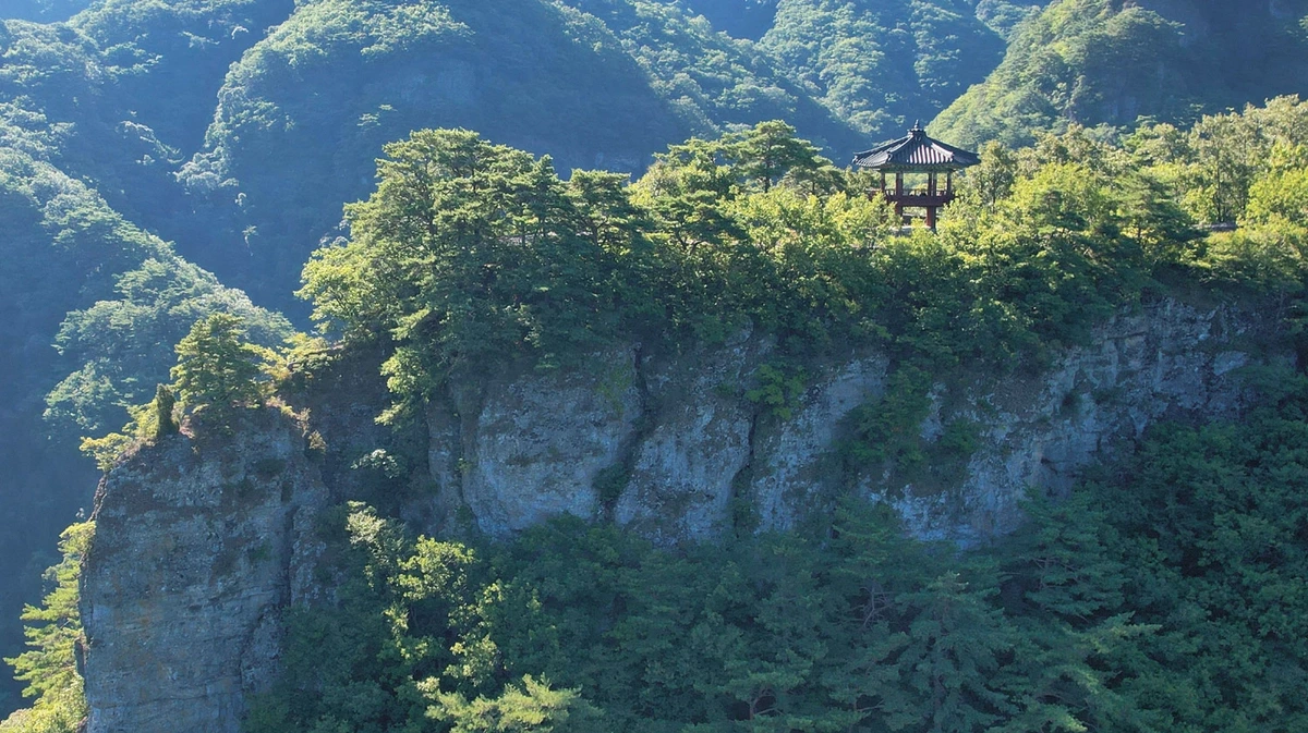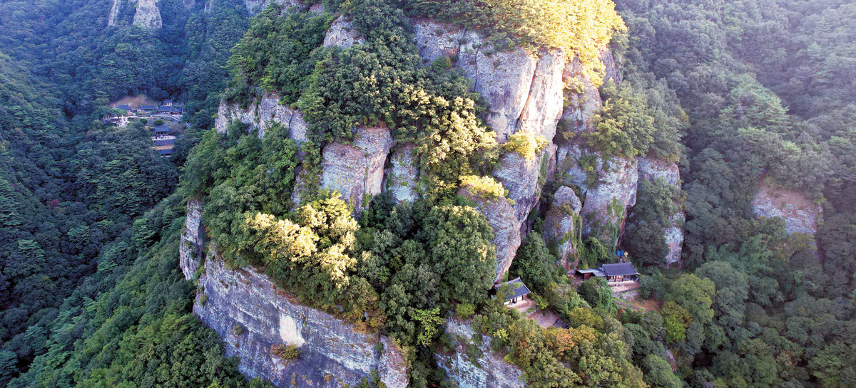 밀성루에 오르면 등 뒤의 축융봉을 빼고 청량산의 열한 개 봉우리를 한눈에 다 담을 수 있다. 금탑봉 아래 응진전의 모습이 먹으로 찍어 그린 수묵화처럼 펼쳐지고, 근육질의 기암으로 이뤄진 암봉과 명물로 꼽히는 ‘하늘다리’도 볼 수 있다.